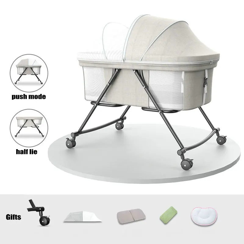 Best Quality Portable Travel Bed with Mosquito Net 4 Wheeled Baby Bassinet can change to Rocking Cradle Simple N
